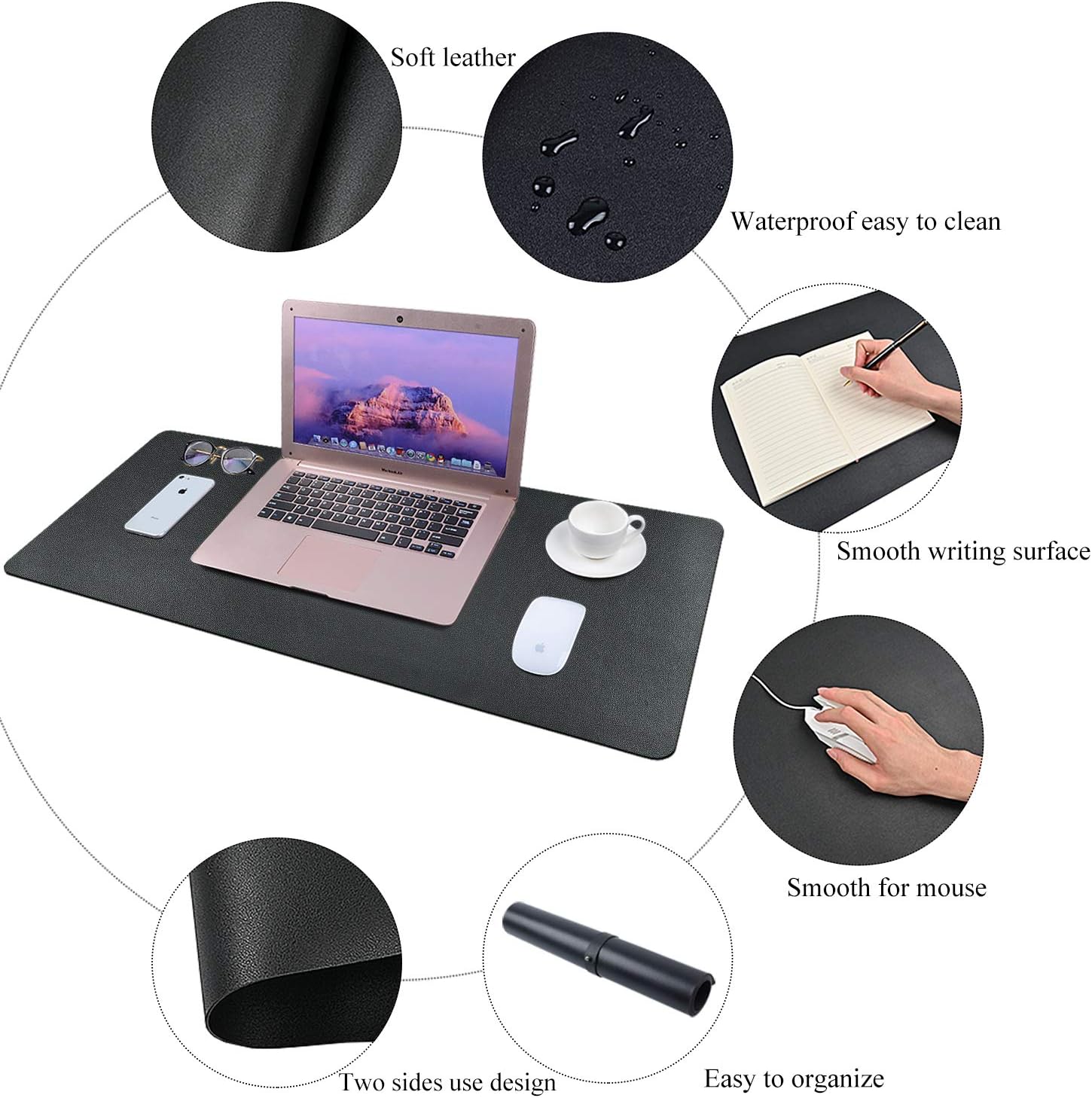 Desk Pad for Office Home 31″ x 13″,PU Leather Waterproof Large Desk Writing Mat Organizer,Multifunctional Ultra Thin Dual Use Desk Blotters Mouse Pad Protector … (Black)